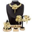 24K Gold Plated Luxury Floral Mesh Jewelry Set - Necklace, Earrings, Bangle & Ring | Elegant African & Dubai Style Statement Pieces – FancyDaria