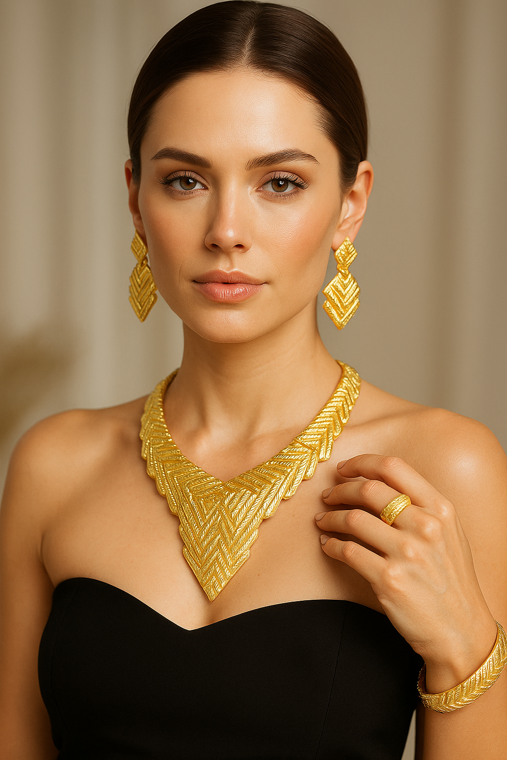 Everlyne Glamorous Jewelry Set – Elegant Gold Plated Necklace, Earrings, Bracelet & Ring