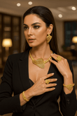 The bold leaf-inspired design adds a touch of artistic flair, while the polished gold plating ensures long-lasting shine and durability. Designed for women who love to make a statement, this set pairs effortlessly with both traditional and modern outfits.