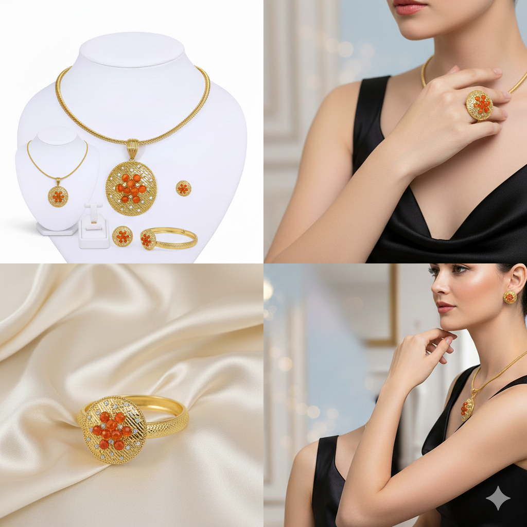 Whether you’re searching for luxury gold plated jewelry, statement jewelry sets for women, or the perfect gift, the Rayo Gold Plated Jewelry Set adds a touch of glamour and refinement to any outfit. Make every occasion memorable with this must-have accessory that exudes beauty, style, and confidence.