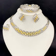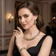 This 4-piece masterpiece includes a statement necklace, adjustable bracelet, earrings, and ring, designed to sparkle effortlessly whether you’re stepping into a celebration, dinner date, or special occasion.